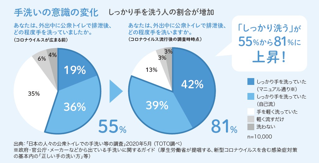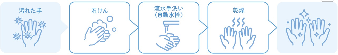 手を洗うときには石けんと十分な流水でしっかり洗うことが重要です。